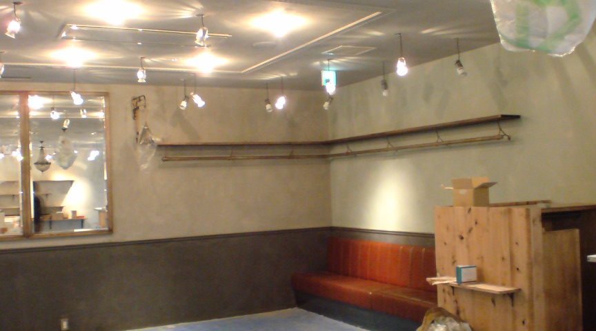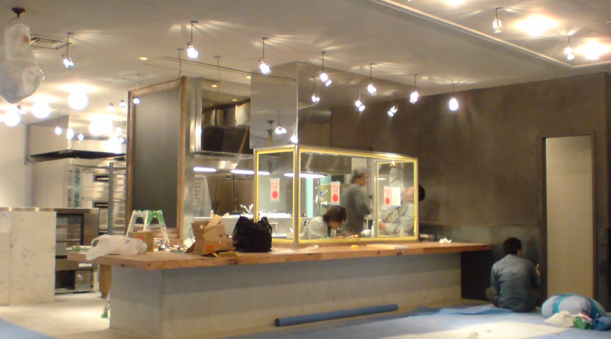 オーナーさんと、デザイナー、そしてペインターのそれぞれのコダワリを1つに凝縮した空間。まだまだ続きます。ペインターヤマグチは、それぞれのイメージをカタチにしながら、空間に家具や照明など様々な要素が加わっていく事を想定し、それを一つにまとめられるよう完成をイメージしての作業。