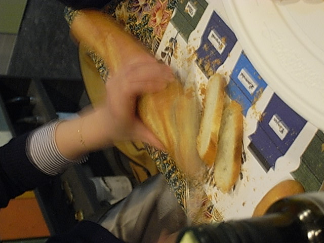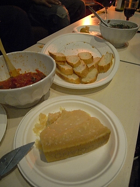 たまたまワイン屋さんで進められ、日本人の美大生が描いたというラベルのボジョレー。贅沢にもナイフで砕いて食べるパルミジャーノとともに。