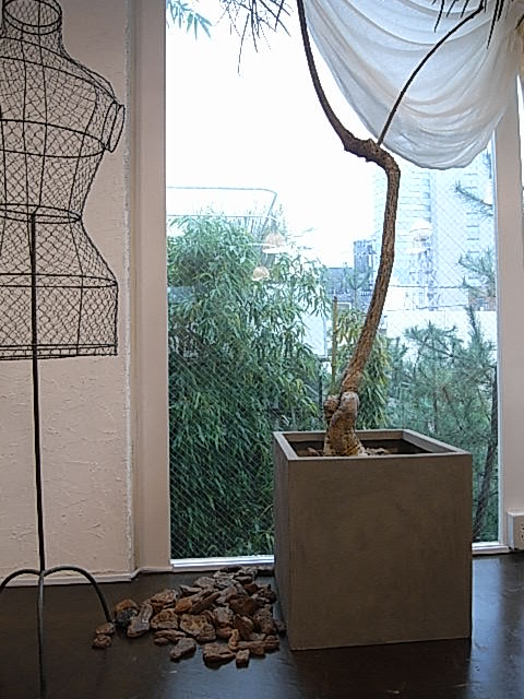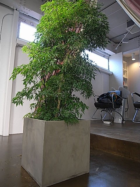 植物が加わると雰囲気が一新。シンプルな中で素材感を大事にしている店内にも自然に溶け込み、スタッフの皆さんにも気に入っていただけて一安心。