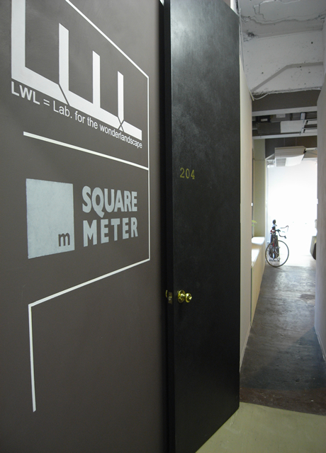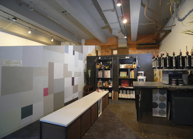 グリットで描いた斜めのパーテーションの向こう側が岸さんのスタジオ。