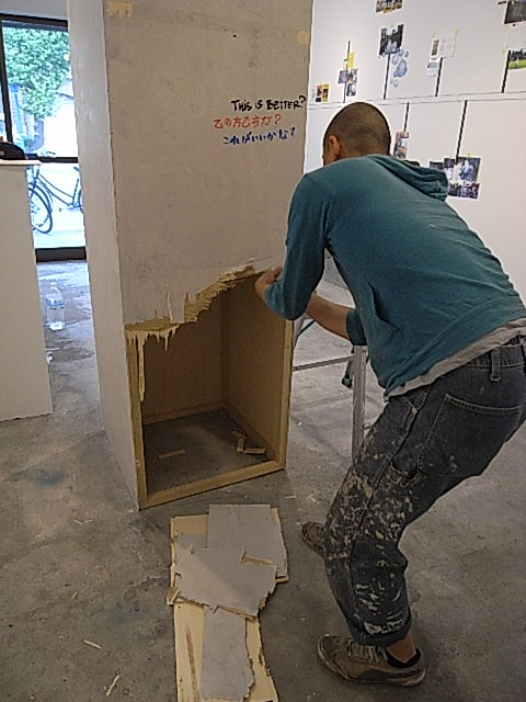 もちろん仕事の合間をぬっての作業ですからなかなか先に進まなかったという事もありますし、やりだしたらとことんコダワル精神。例え短期間の場所でも、『空間を魅せる』事を仕事としているため、自分達の拠点は出来る限りの事をしました。