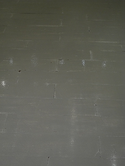 フローリングの上にウレタン加工のピカピカの床を、アンティークテイストに作りこんでいきます。