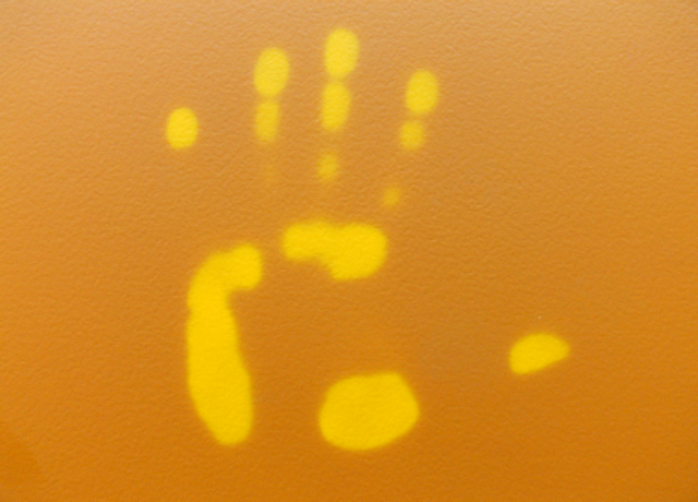 座ったときにお尻のカタチに色が変わったり、手形がついたり。