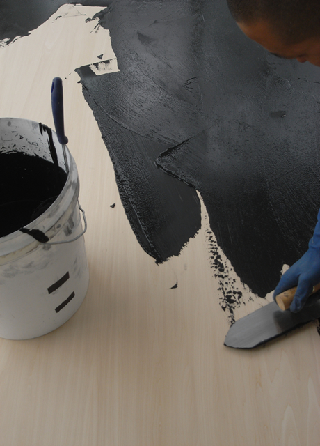 あらゆる素材のペイントを使いこなしているヤマグチも、黒漆喰は初めて。