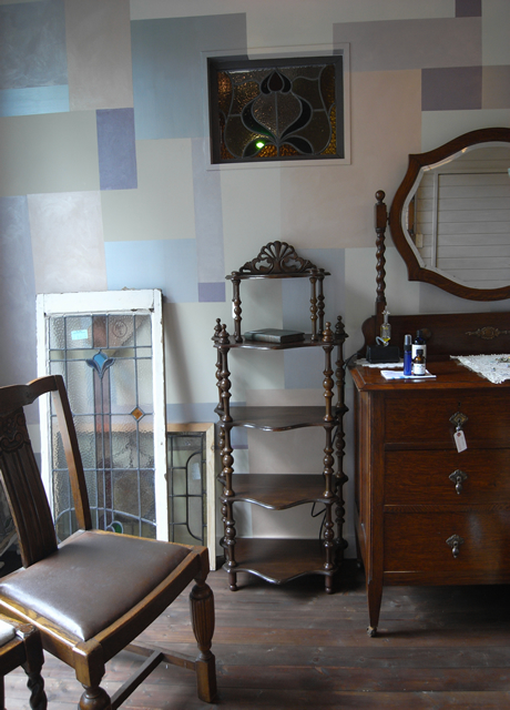 1階のアンティークショップは、1面をグリッドデザインに。