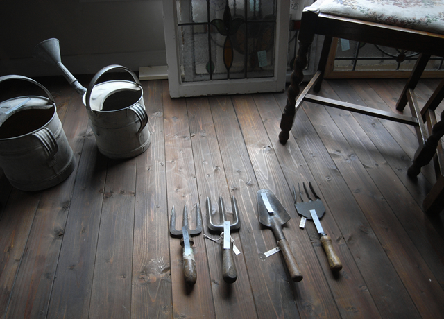 アンティークショップのオープン祝い。早速ブリキのじょうろにディスプレイ。お店の雰囲気もぱっと華やかに盛り上げてくれます。