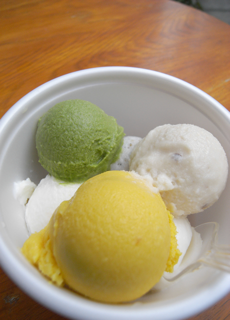 途中アイス屋さんを発見。思わず頼んだ6色アイス。