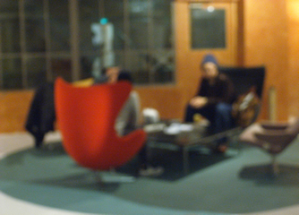 そして、その空間を周辺スペースのインフォメーションとしての役割と、ラウンジとしての役割を果たすスペースと位置づけ、同じくZAIM入居団体である 田口製作所に協力を得て、スピーカーを設置、音の相乗効果によって居心地の良い空間を作ります。
