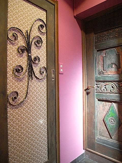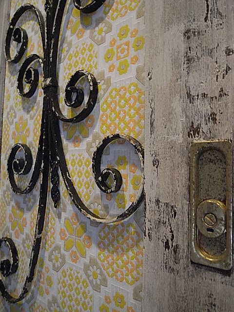 各階のトイレの扉。真新しい扉を古びたアンティーク風に。
