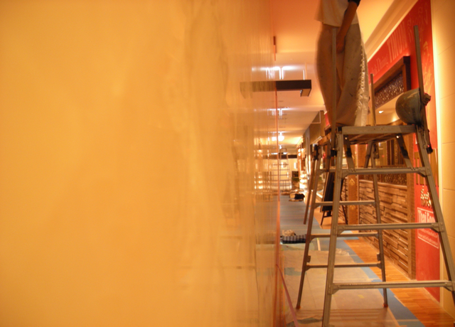 規模が大きく、一人で200㎡近くをストゥッコを使って塗装しています。