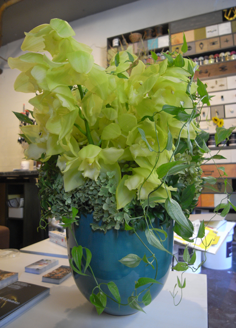 翌日、頂いたお祝いのお花達に囲まれ、お花屋さん化したショールームに幸せ