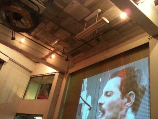 似て非worksかつて野毛にあったコアなロックバー「MUON」から、所蔵ビデオ200本が寄贈されたそうで、その日は壁面大スクリーンにフレディーマーキュリーの姿が。