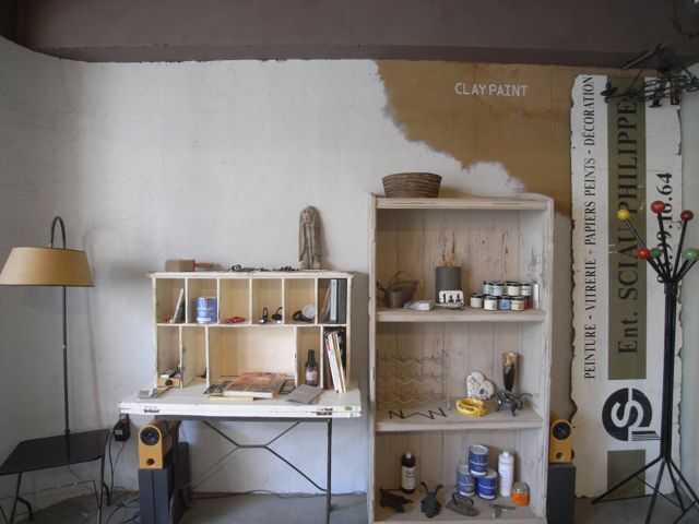 クレイペイント、ショールームの一面にペイントしました。
