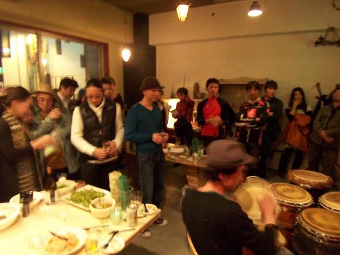パーティの途中には、スペシャルゲストとして仕事で協力してもらっている2人によるパーカッションライブをしてもらいました。