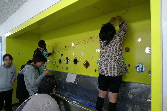 2週にわたるこの企画、来週はこの面に美術部の生徒達が自分達で作った鏡をつけていきます。