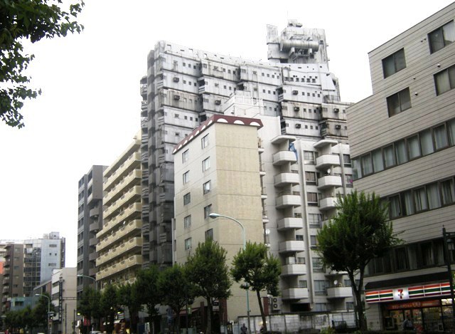 建築家、渡邊洋治氏の代表作として今も残る第3スカイビルは、1970年に竣工した地上14階、地下1階建ての建物。事務所と共同住宅で構成された建物は、渡邊建築事務所、丸運建設によって建設された。シルバーに塗られた躯体、横起きされた給水塔、ユニット枯れた各室など軍艦をモチーフとしたデザインが施され、俗に軍艦マンションと呼ばれている。狂気の建築家、異端の建築家と呼ばれていた渡邊氏は、陸軍船舶兵出身という経歴をもち、その影響がうかがえる独特のデザインの建築物をいくつも手掛けた。軍艦マンションという通称を持つ第3スカイビルは、その中の代表ともいわれる建物である。
